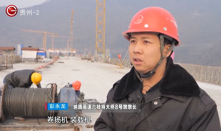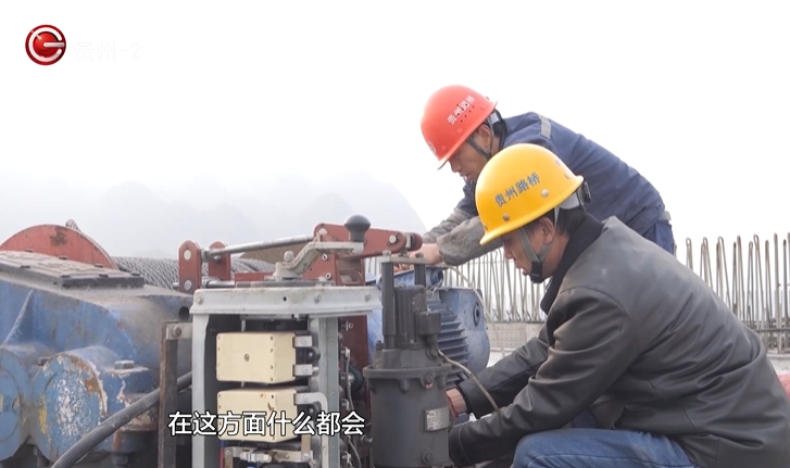 六枝特大桥8号墩墩长彭永龙:所有的机械设备,像卷扬机、装载机、塔吊、平板车、随车吊、高栏车,只要出问题,他一个人就能搞定。设备出啥毛病,他都能第一时间赶来修好,给施工节省了时间,方便太多了。