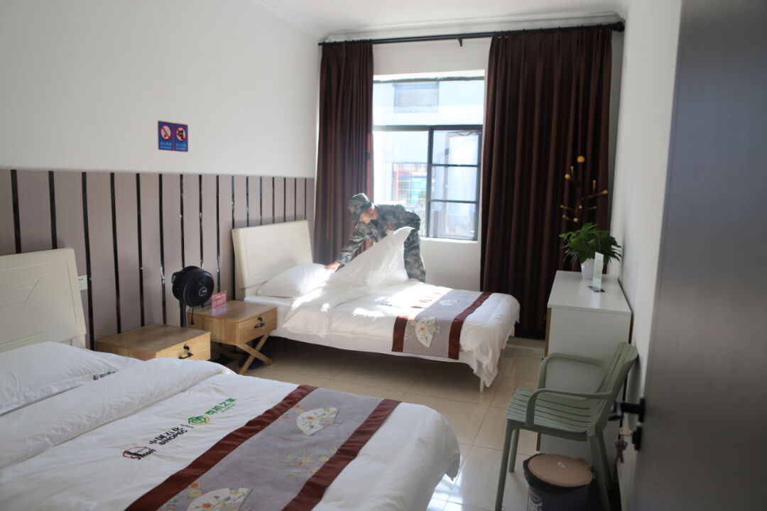 “像我们跑物流的,在路上一个来回可能要四五天,衣服都是带一大包备用的,睡也基本都是睡在车上,军人(退役军人)驿站设有厨房,厨房里有冰箱、电磁炉、锅和调味料,工具很齐全,我们开长途的特别累,能在休息的时候吃一口新鲜的热饭热菜感觉特别幸福。”退役军人货车司机王胜祥感慨地说。“除了有厨房,里面还有沙发、饮水机、空调、餐厅、休息区、淋浴房、洗衣间等等,不仅为我们提供了便利和优惠,军人(退役军人)驿站这些醒目的标识让我倍感自豪,让我们感受到了社会对军人(退役军人)的关爱和尊重。”