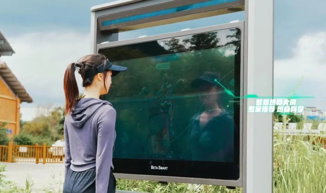 而智能热身训练终端正好为参赛者提供运动前的热身训练服务,针对不同体质人群,提供不同的热身放松模式。经过AI智能识别算法,系统识别运动者热身动作是否达标以及活动次数,并根据不同人员提前录入的体质信息判断是否完成热身项目,保护运动者避免肌肉拉伤等意外发生。智能燃脂塑形操训练设备则包括健身街舞、HIIT运动组合、广场舞、搏击操等多套操课内容,可多人同时体验,初、中、高级课程,满足不同阶段运动者需求。