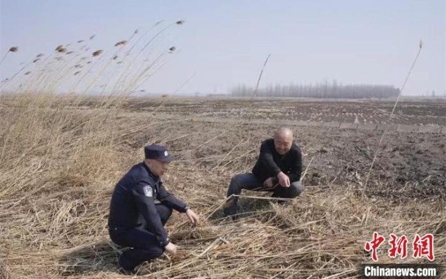 “向游客宣传维护生态环境、保护候鸟迁徙的理念,俺(我)不如你们,嘴笨。可是抄小道、穿庄稼地,搜捕鸟工具,拆破旧渔网,这些活儿你们可不如俺,从小就整这些玩意儿。”范立杰跟同行的民警们打趣说。