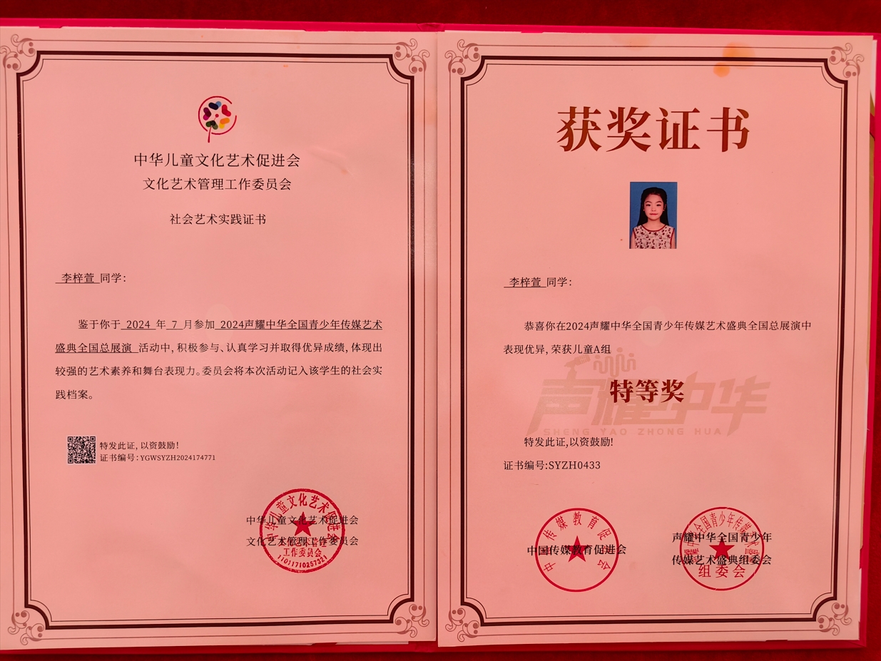 阅读与练字同样是我的爱好,还曾荣获“阅读之星”和“书法小能手”的称号。这些活动让我沉浸在自由与快乐之中,同时也教会了我坚持与努力的重要性。这就是我,一个热爱朗诵、主持、阅读书籍和书法的女孩。我期待与大家成为好朋友,共同分享艺术的美妙!