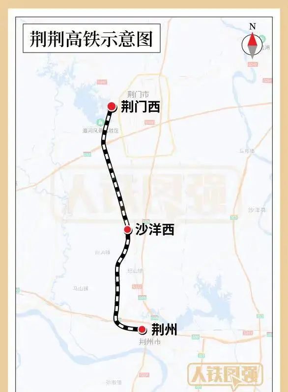 荆荆高铁和沪渝蓉高铁是国家“八纵八横”高速铁路网的重要组成部分,两条高铁将在荆门西站交会互通,设计时速均为350公里。荆荆高铁线路全长77.6公里,东西连接沿江高铁,南北贯通呼南高铁。