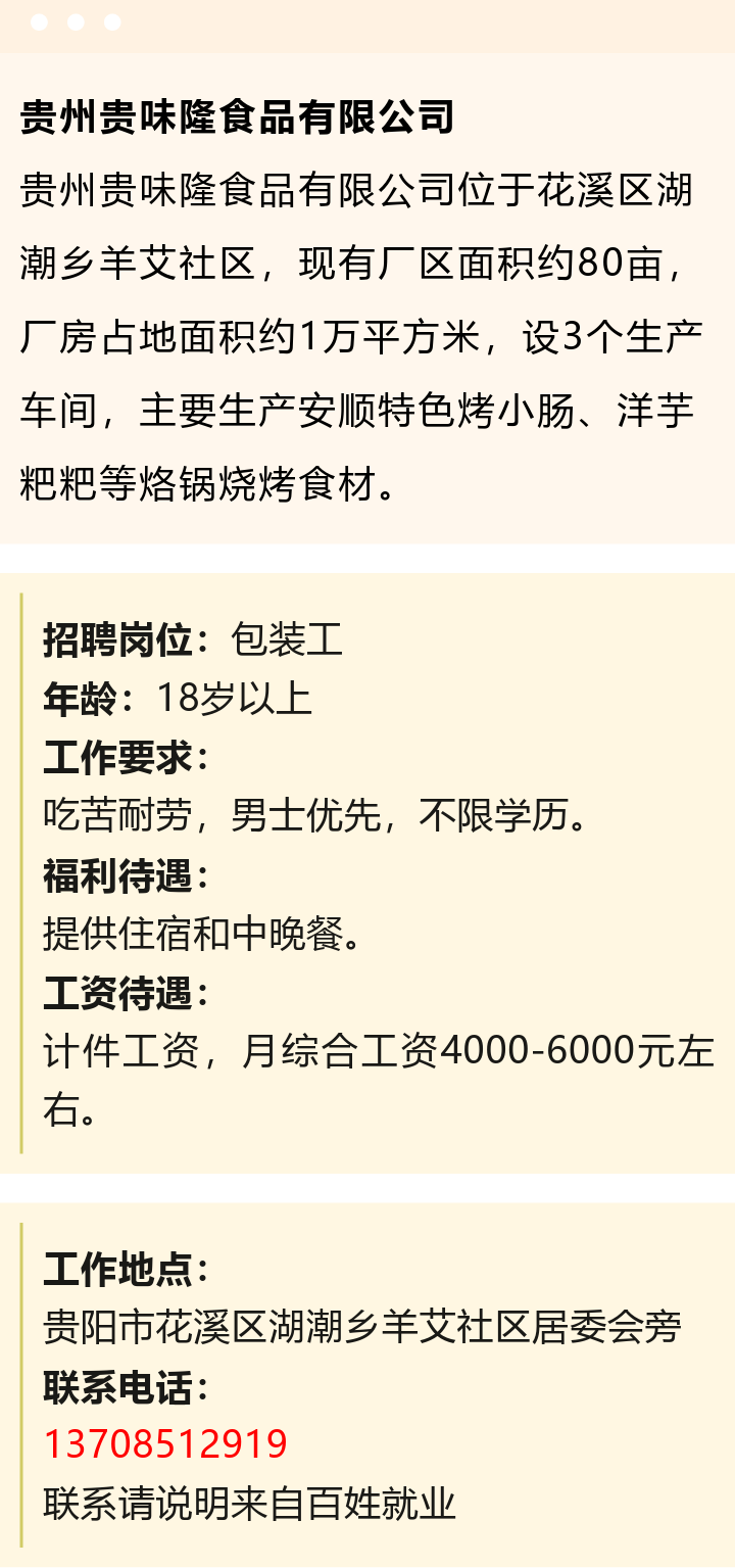贵阳市花溪区招聘包装工!月综合工资4000-6000元!提供住宿和中晚餐!
