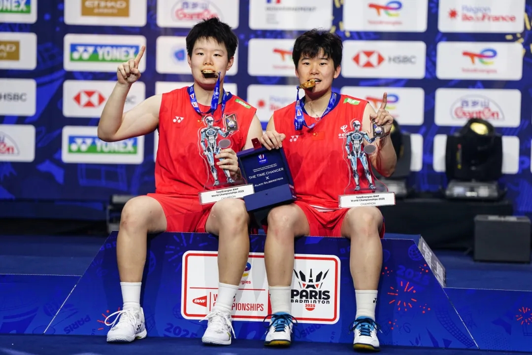 女双是国羽优势项目,在过往10届世锦赛中赢得8个冠军。其中最近的一次是陈清晨/贾一凡,她们是世锦赛四冠王,“凡尘”组合正是“圣坛”组合的榜样。“我们也希望能像大姐姐们一样,无论遇到什么情况,遇到什么困难,在场上都能够调整得很好。”如今,她们做到了!(图片来源:新华社)