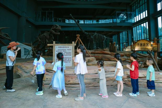 据介绍,目前科普研学基地配备了20余名专业科普老师,提供专业指导。“今年暑假期间,基地每周常态化接待亲子家庭与夏令营团队,单周接待量稳定在500人次以上。”贵阳市清镇恐龙小镇科普研学中心高级讲师周汝南介绍说。