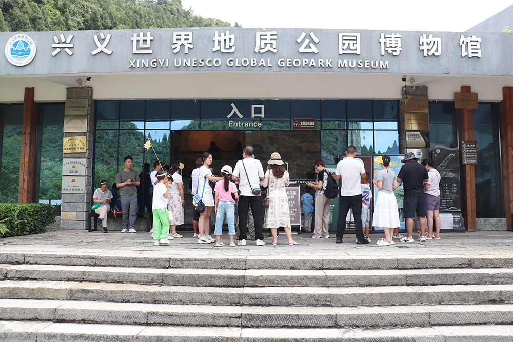 “兴义成功申报世界地质公园、万峰林景区获评国家5A级景区后,今年暑期游客量呈现爆发式增长,博物馆也依托兴义旅游迎来游客量剧增。为提升游客体验,8月初博物馆开始实行实名预约、分时段进馆,每天分4个场次,限制入馆人数。游客可通过微信小程序、小桔子预约门票及体验项目,也可关注博物馆公众号了解游览信息。下一步,博物馆将根据游客量实时调整预约方式,提升游客舒适度。”兴义世界地质公园博物馆主管郑秀敏介绍,今年暑假,兴义世界地质公园博物馆游客同比增长50%以上,游客主要是来自北上广、四川、云南等城市的亲子家庭。