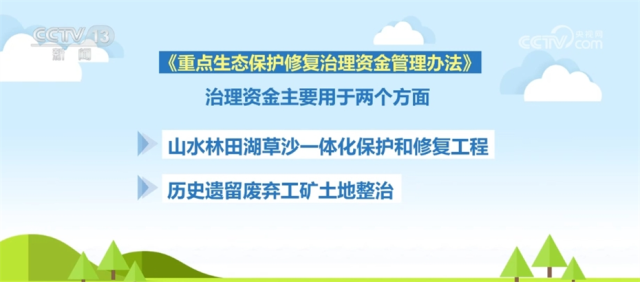 新办法提到的治理资金主要用于两个方面:一是用于山水林田湖草沙一体化保护和修复工程,二是用于历史遗留废弃工矿土地整治。