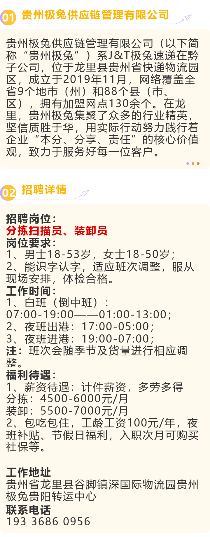 贵州极兔供应链管理有限公司招聘!月薪可达7000元!包吃包住!