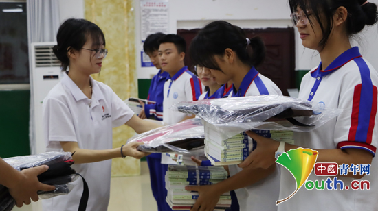 研支团成员向学员捐赠“名著小书包”读物。南昌大学研支团供图