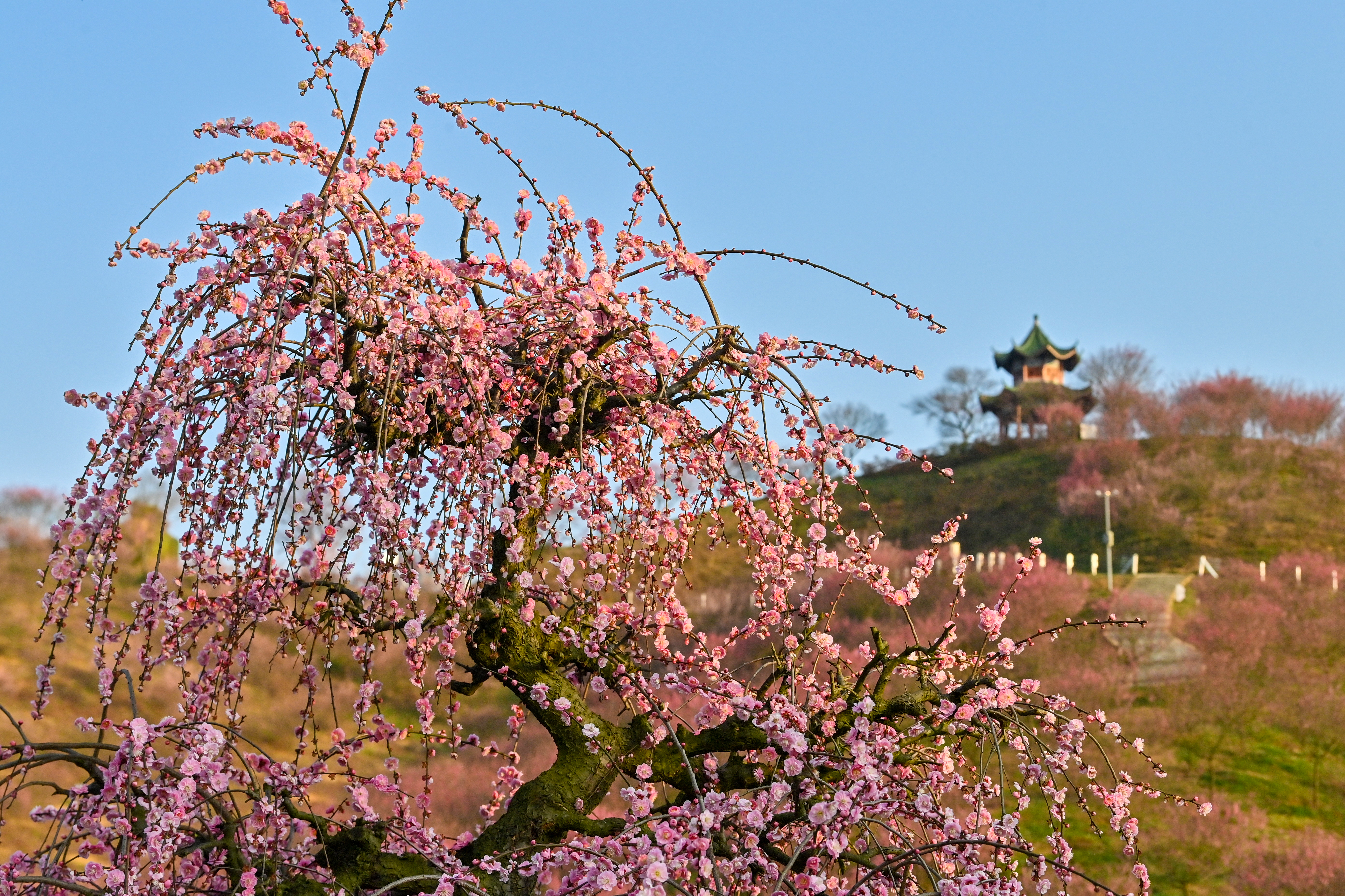 贵州梅园可谓是少有的赏梅胜地,其独特的地理位置与精心规划的园林布局,使得梅林处处皆成风景。