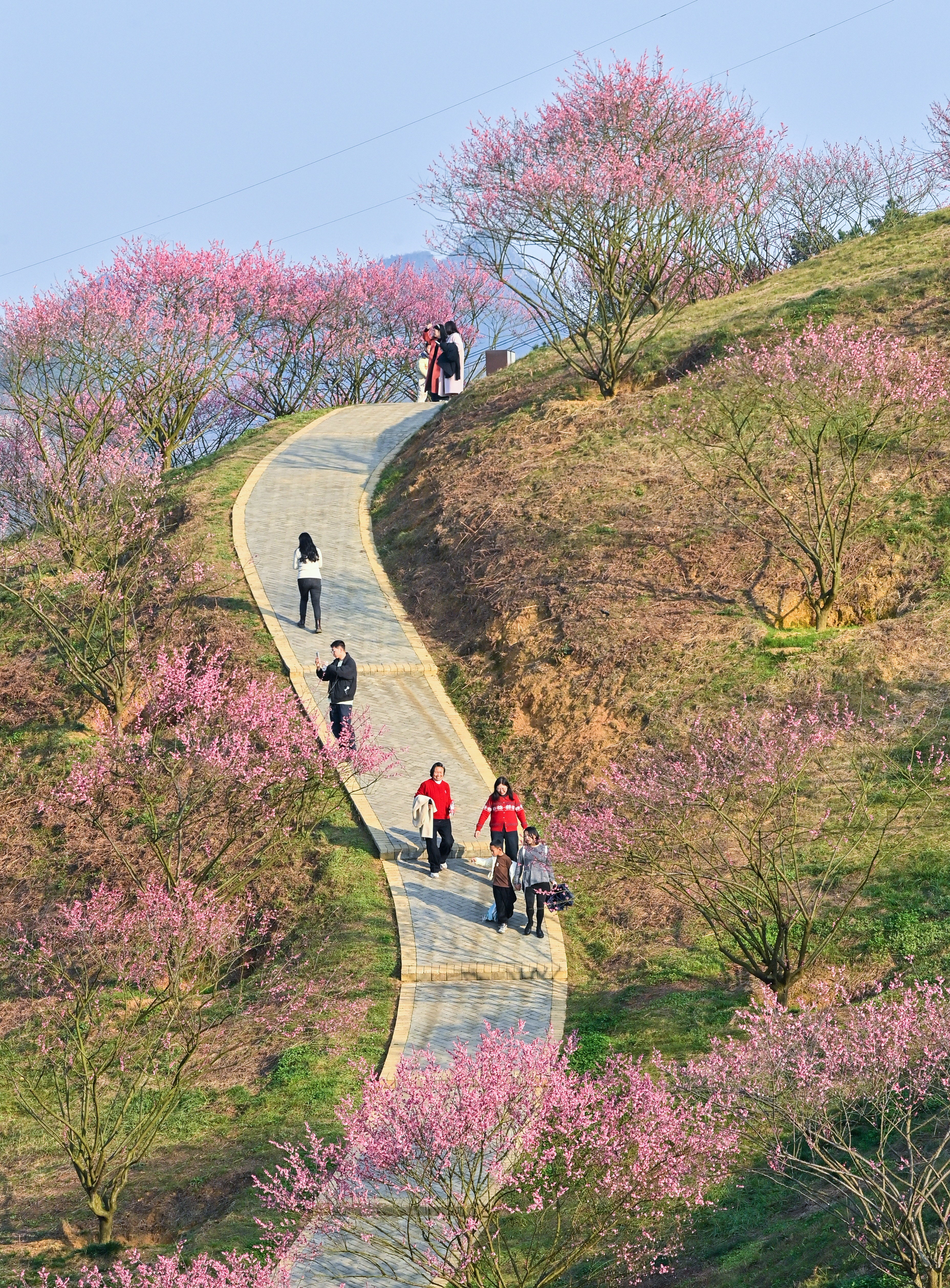 近年来,当地通过“生态修复+产业造血”模式将原来的荒坡改造成梅花主题观光园。目前,园区总面积达1800亩,种植了不同品种的梅花5万余株。