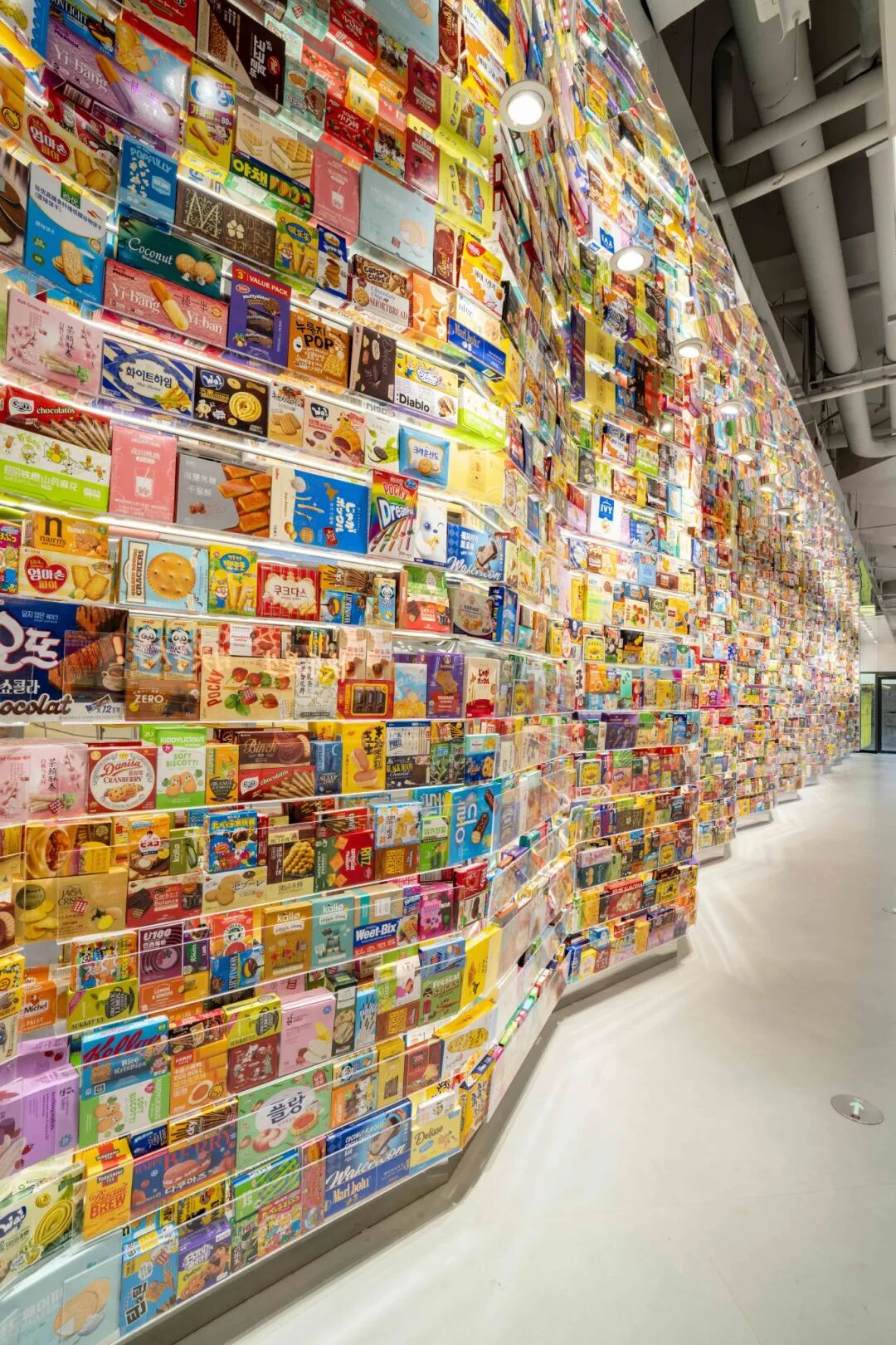“可逛、可玩、可拍、可买”是该项目另一大特色。“零食王国”将“超多零食、超大面积”转化为可深度参与的探索体验,消费者进入大门后,首先将穿过“零食长廊”,两侧墙面以真实膨化食品包装拼贴呈现,用“新奇、好玩、轻松”的空间节奏,完成从日常到快乐王国的情绪切换。