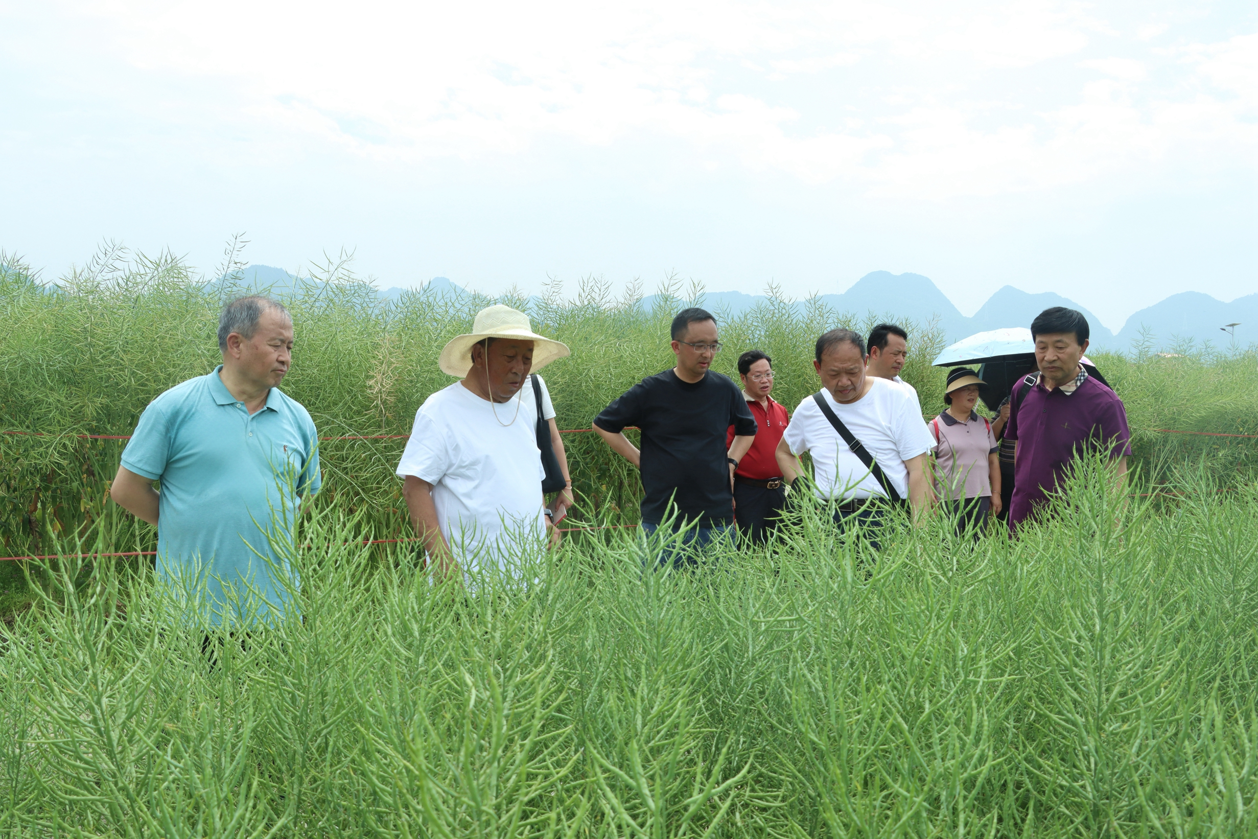贵州省农科院老科协专家在田间查看油菜长势
