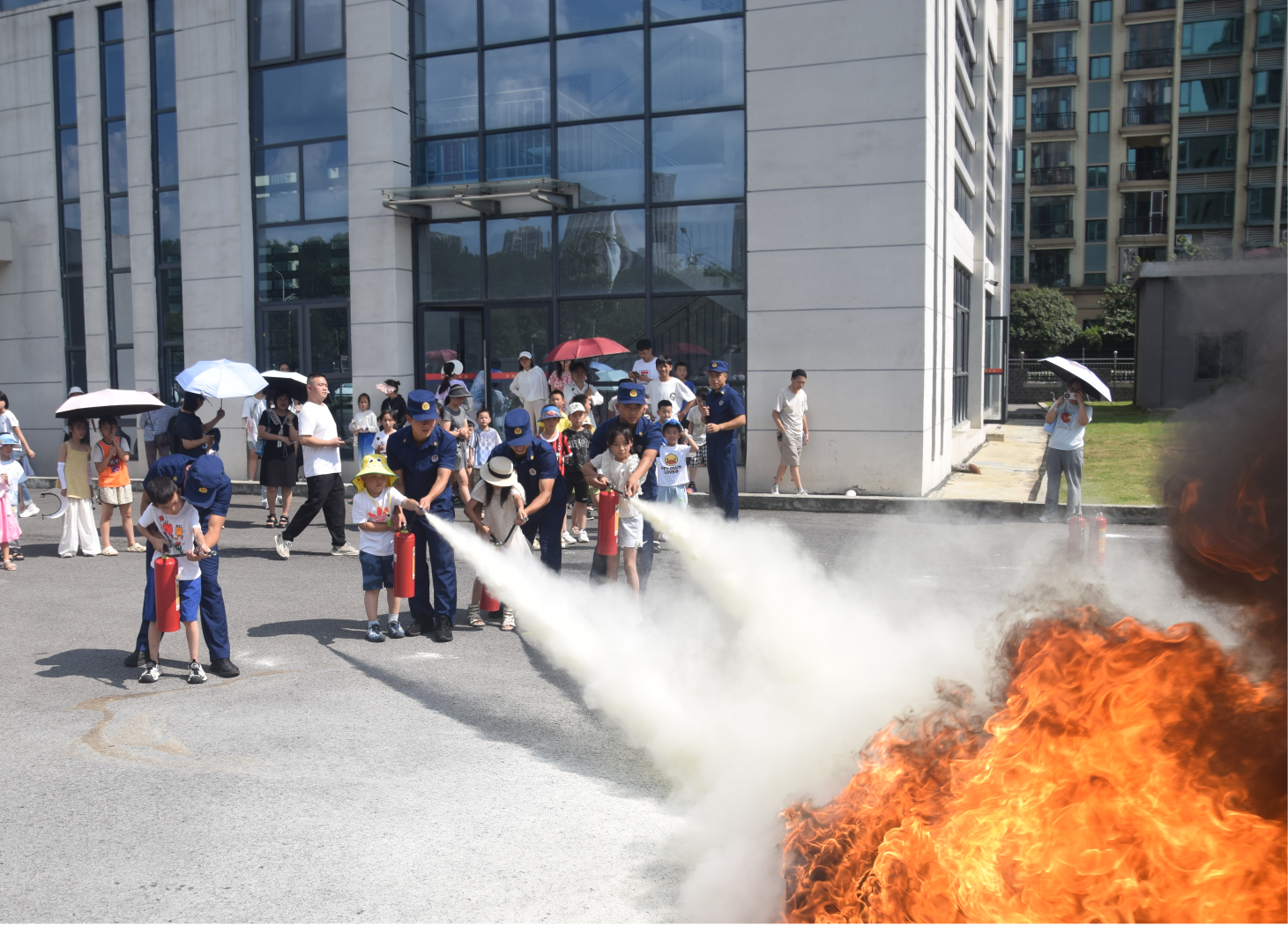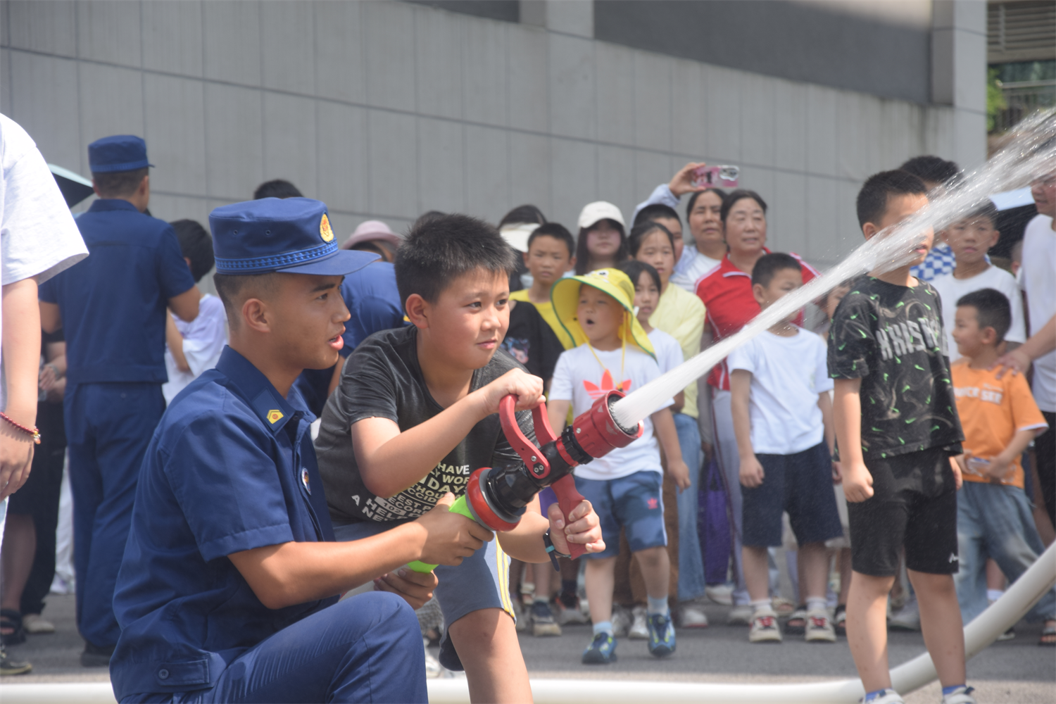 在消防水枪和灭火体验环节,消防员一对一指导孩子们亲自使用专业水枪和灭火器进行模拟灭火。通过沉浸式灭火体验,孩子们近距离感受了消防的魅力,不仅掌握了实用的消防知识和技能,还在心中种下了消防安全的种子。
