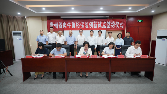9月13日,省农业农村厅分别与人保财险、太平洋财险、国寿财险、平安产险、国元农险等5家保险机构贵州分公司举行肉牛价格保险创新试点签约仪式,标志着全省肉牛价格保险创新试点承保工作正式启动。