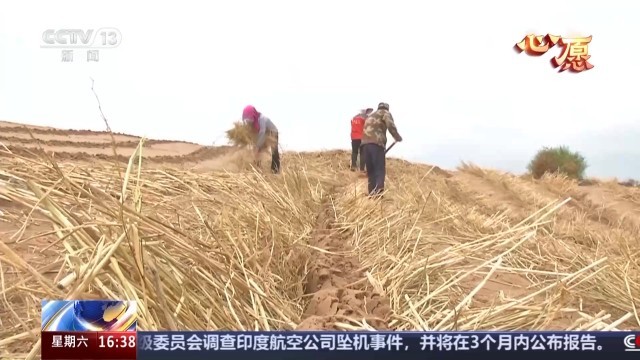 每年三月份开始,王银吉一家和亲戚们,利用春耕还没开始的空档,就带着锅碗瓢盆,开着老吉普车载着稻草进了沙漠。多年的劳作,大家的配合已经相当默契,开沟、铺草、埋压,一个个草方格很快就蔓延在沙丘上。随后,大家再把沙生植物的幼苗种在草方格中。
