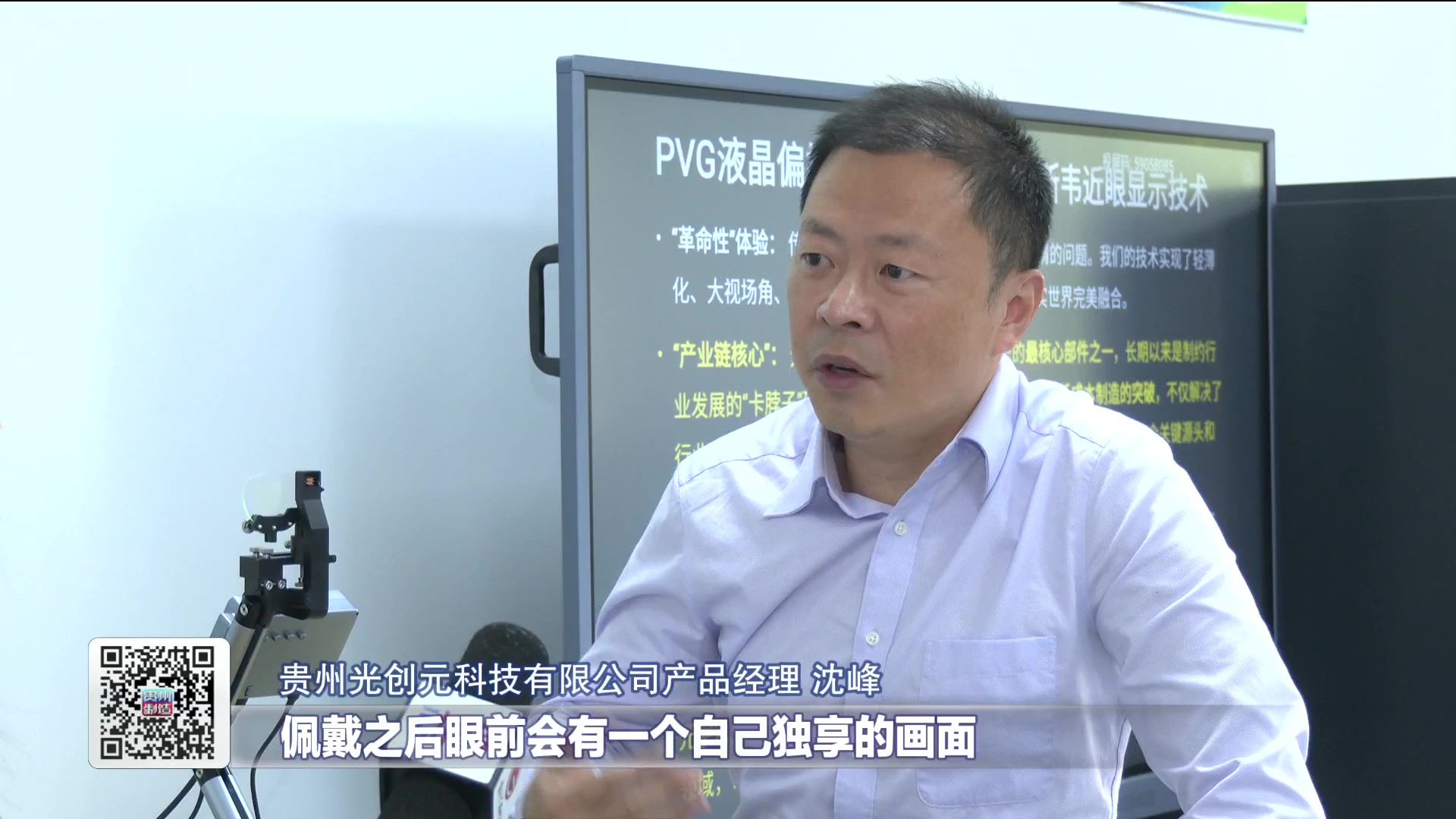 贵州光创元科技有限公司产品经理沈峰介绍,佩戴之后眼前会有一个自己独享的画面。目前单个镜片能做到4克以下,厚度只有0.9毫米,公司做的产品性能光效值比较高,需要的电池也就越小,这是市场关注度最高的,影响了整机的重量。