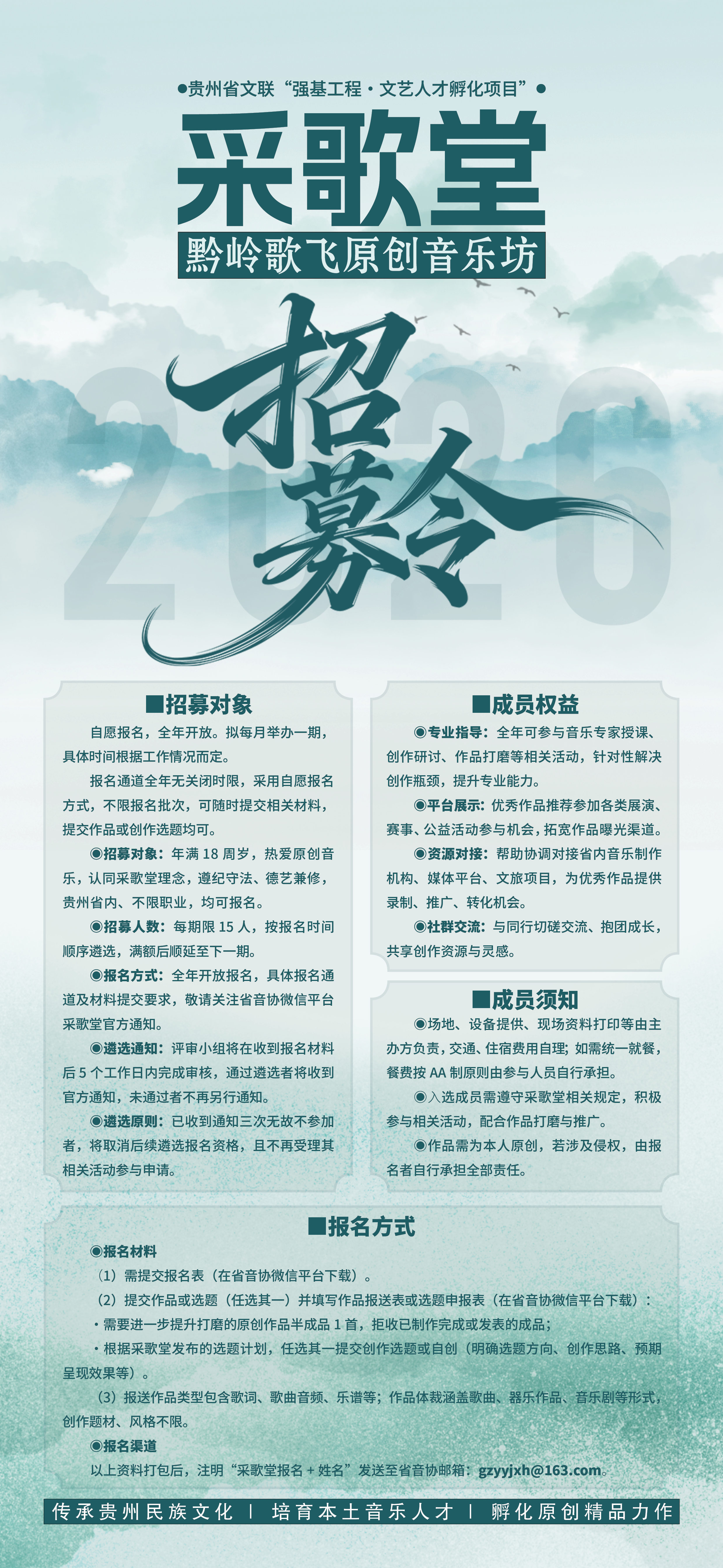 据了解,“采歌堂”黔岭歌飞原创音乐坊是贵州省文联“强基工程”的公益性重要实践载体,每月举办一期,面向全省招募词曲创作者、音乐爱好者自愿参与,持续开展各类创作交流活动,凝聚全省音乐创作力量,坚持以“传承贵州民族文化、培育本土音乐人才、孵化原创精品力作”为核心目标,并立足白云区向全省辐射,持续为基层音乐创作者搭建交流、学习、创作、展示的优质平台,助力贵州原创音乐高质量发展。