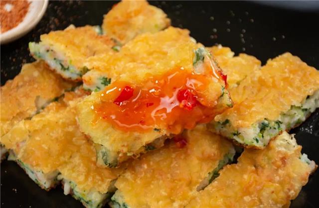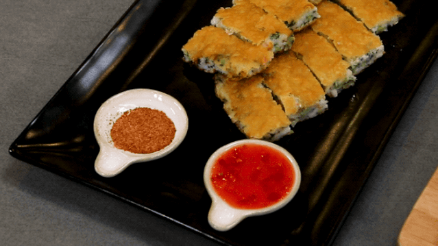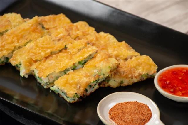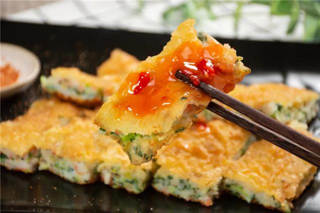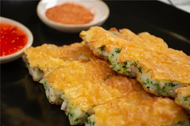 小棠菜口感比较清爽,虾泥和猪肥肉泥则鲜味十足,两者搭配口感十分清爽,经过煎炸后入口松化又酥脆。更重要的是,还可以蘸泰式辣椒酱和椒盐,可以一次随心吃到多种口味!赶快试试看吧~