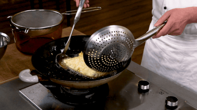 油温170-180摄氏度,馅料入锅炸至两面金黄。