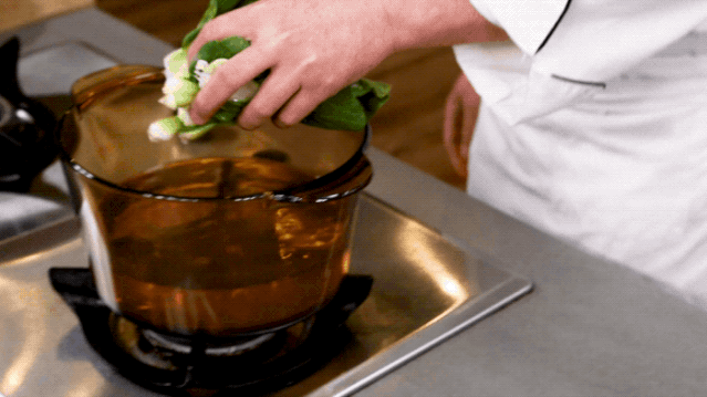 小棠菜,也叫上海青、瓢儿白,爽脆好用;广东的虾滑鱼滑也是鲜美百搭,将它们配在一起,上好浆或贴上腐皮煎炸,便成就了这道融合上海本帮菜和粤菜的脆皮锅贴小棠菜。