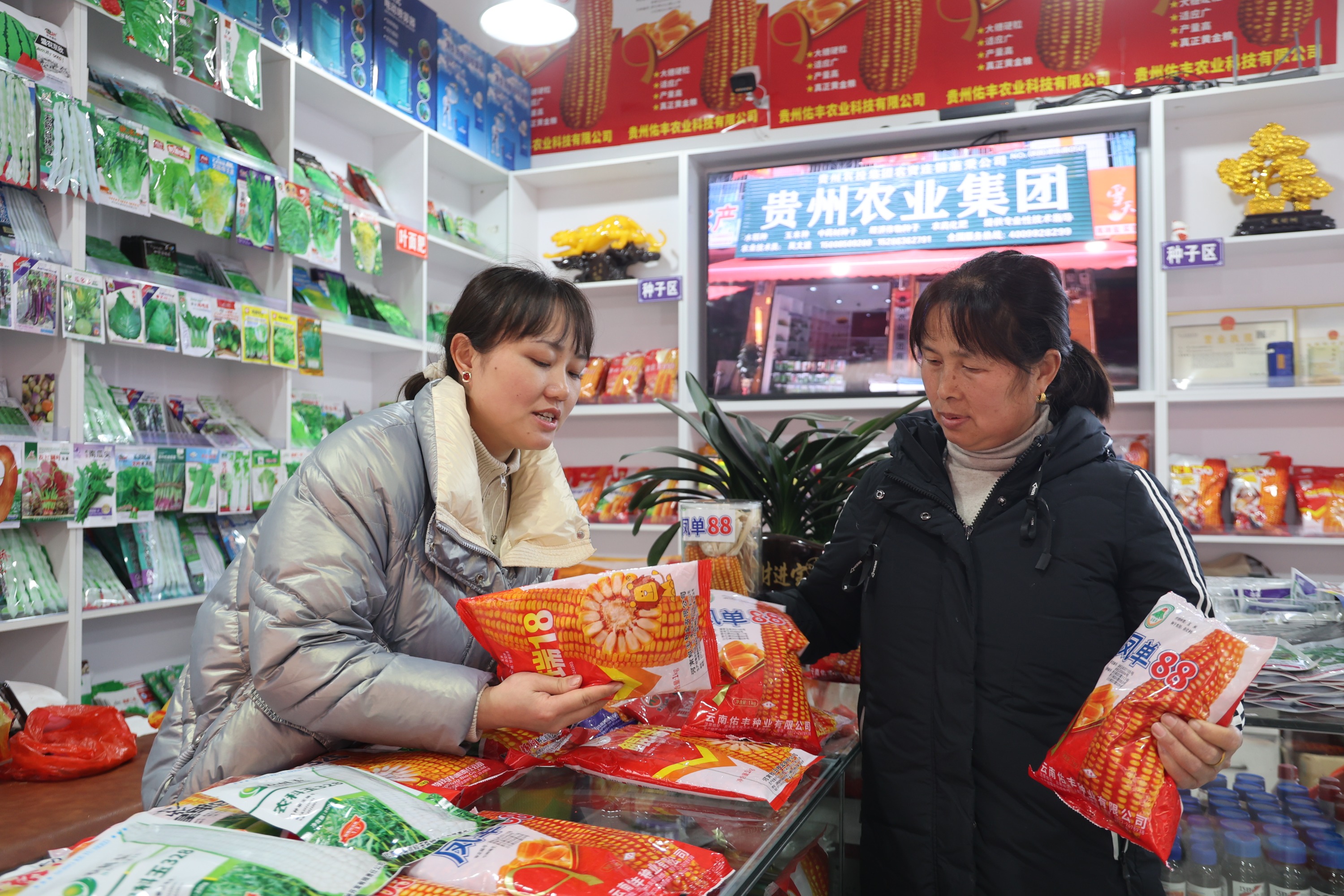 "去年在他家买了5包玉米种子,种出来的效果很好,今年打算扩大种植规模,就买了10包,他家种子品质有保障,我信得过,所以今年又来回购了。"牛大场村农户黄经学拿着刚挑选的种子告诉记者。