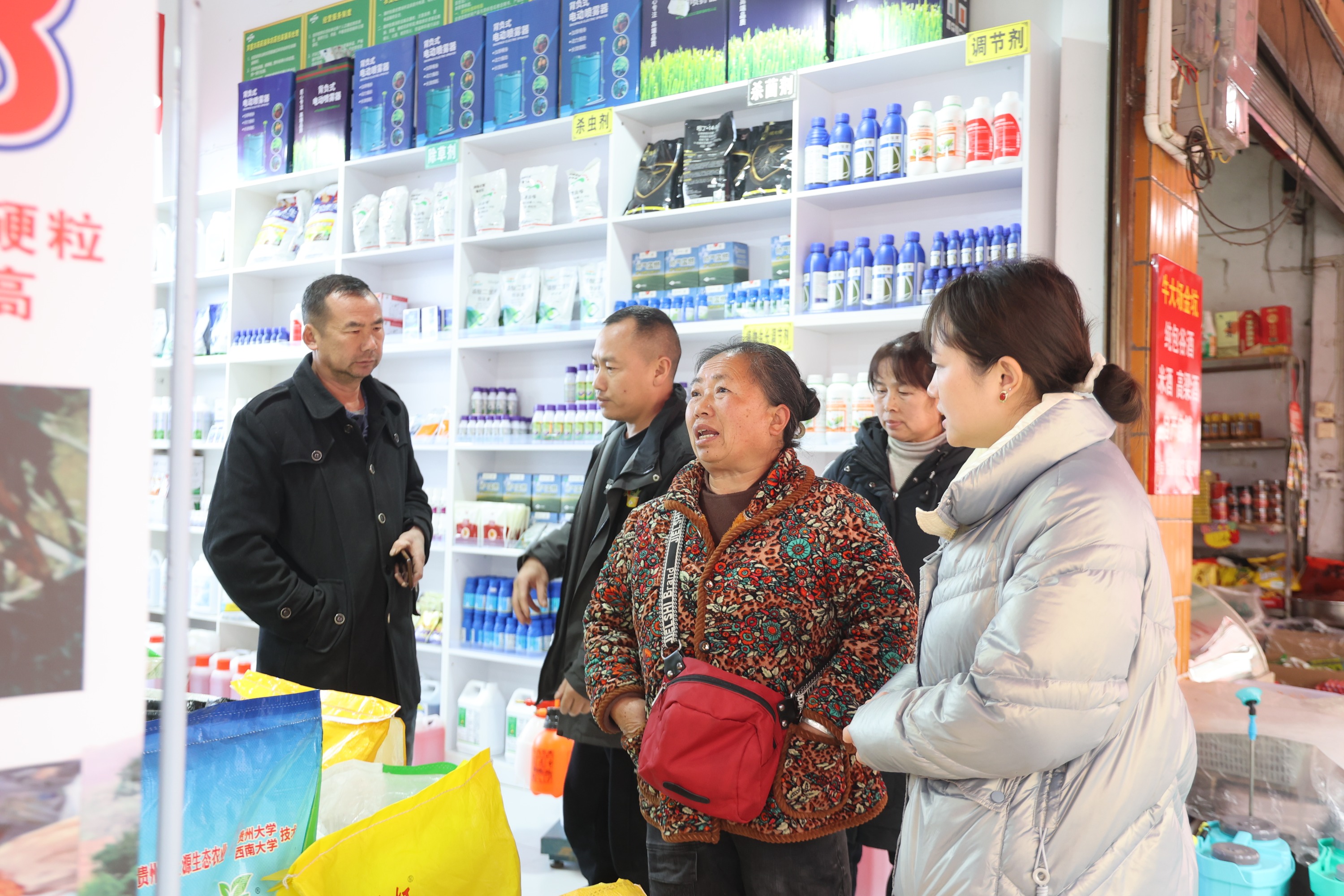 农资经营商户正在向农户介绍产品