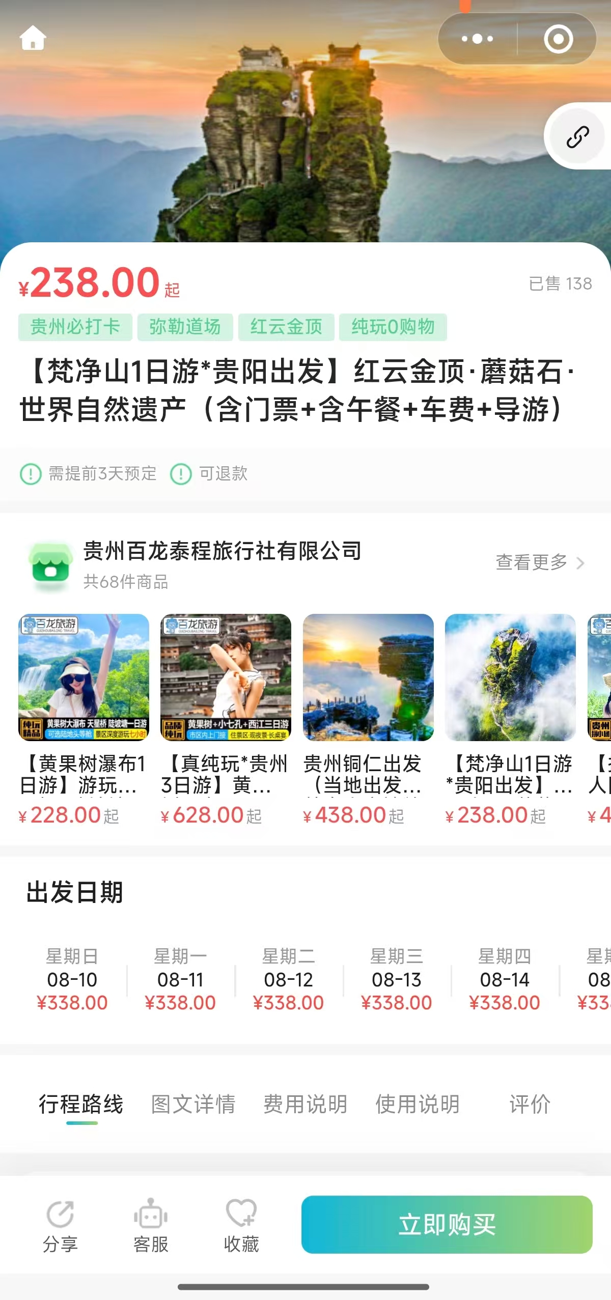 您可以选择梵净山一日游。