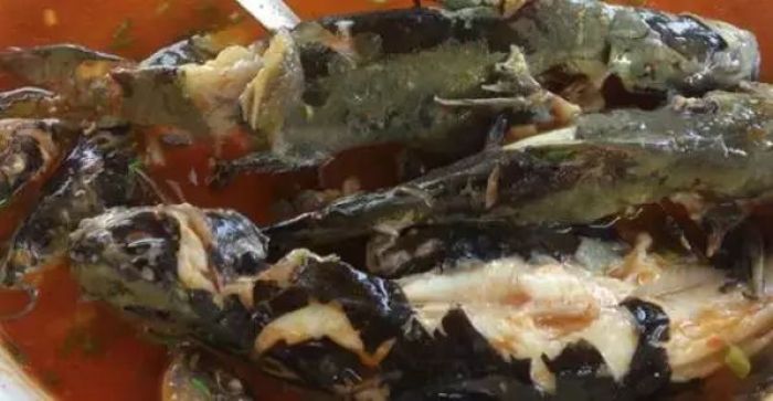角角鱼是梵净山独特的野味,鱼香气四溢,异常鲜美。酸汤角角鱼以当地的角角鱼为主料,搭配酸爽开胃的酸汤烹制而成,酸汤的独特风味与鱼肉的鲜嫩完美结合,再加上木姜子等香料的点缀,让人回味无穷。