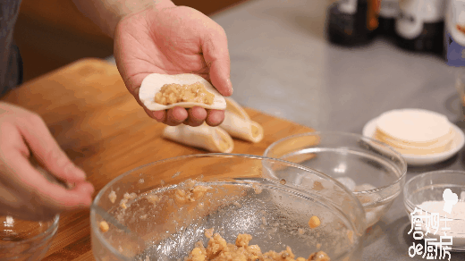 大厨在包锅贴时,两头没有封口,馅料露在外面,煎的时候就已经香味四溢~