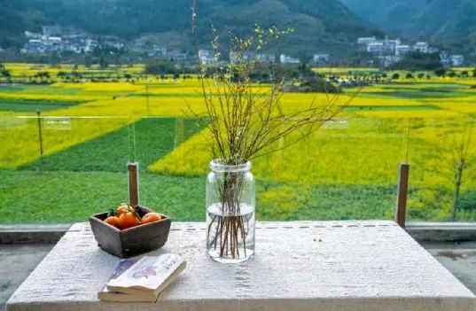 盛开的油菜花沐浴着和煦的春风,馨香扑鼻,绽开的花苞带着晶莹的露珠,给住客一场“满城尽带黄金甲”的春天盛宴。