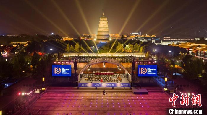 10日晚,2022西安交响乐团大雁塔户外公演在线上播出。 西安音乐厅供图
