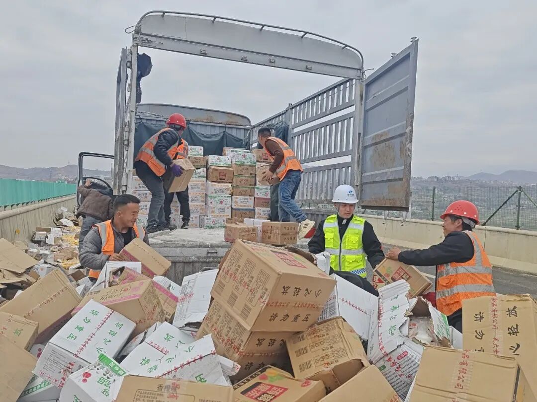 3月11日,G7611都香高速中水特大桥发生货车侧翻,约10吨货物散落路面,毕节营运中心党员先锋队迅速清理转运,以最快速度恢复道路安全畅通。