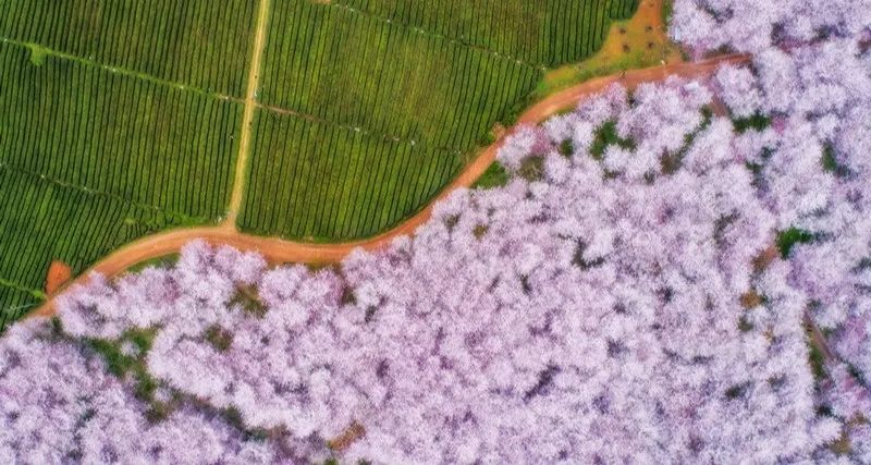 春天的贵州繁花似锦:万亩烂漫的平坝樱花吐芳竞艳;金海雪山千顷雪白的酥李花与连绵数里的油菜花交相辉映;贵阳永乐乡的朵朵桃花肆意绽放;九洞天景区樱桃花开向人们昭示着春的来临;哦,对了!还有这满目葱绿的茶海,清新的空气伴着浓浓的茶香,沁人心脾……春的如约而至打破了冬的寒冷,从枝头吐新芽到山花烂漫时,是!浪漫了整个春天。