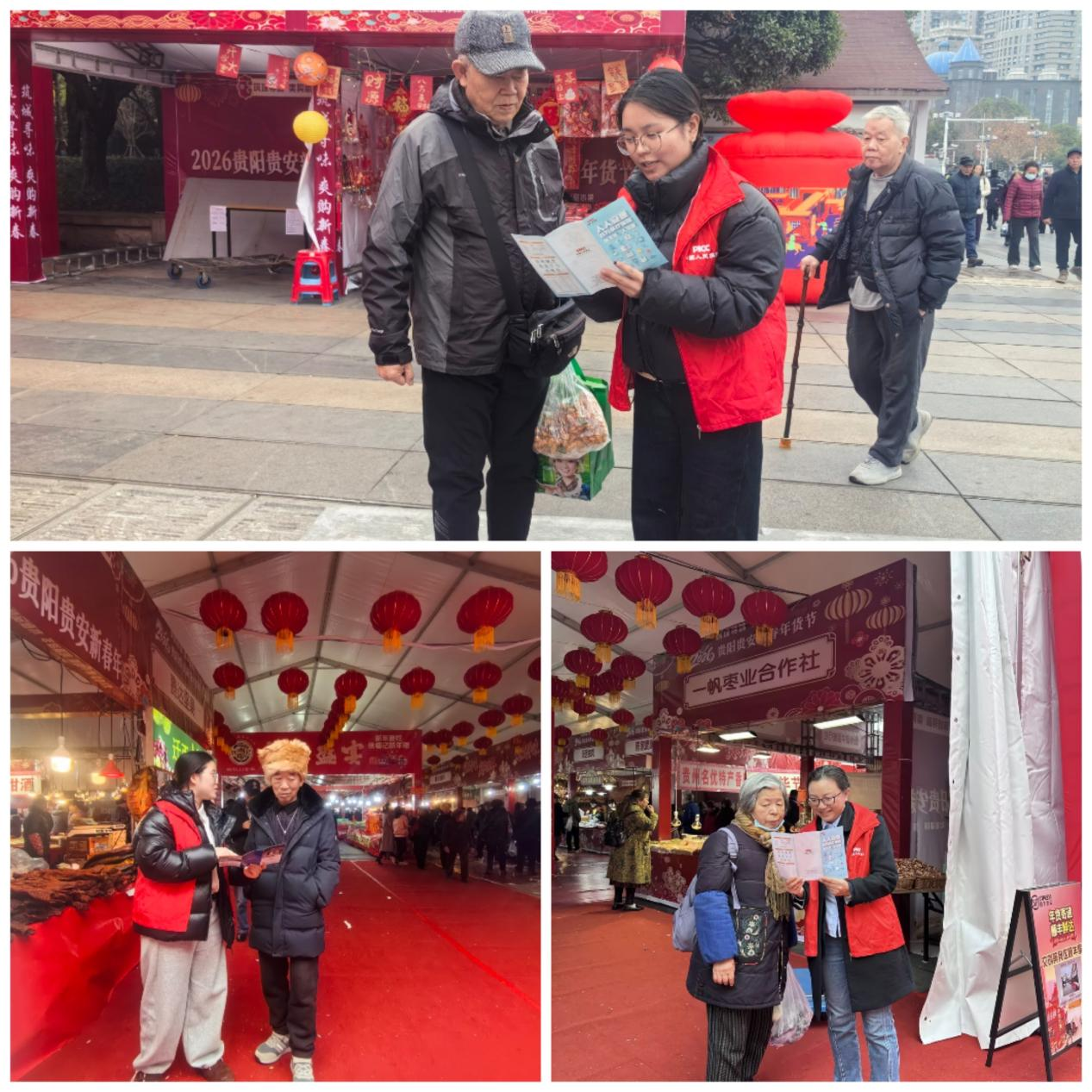 岁末年初,年味渐浓,年货节商圈人流涌动,市民消费与生活规划需求集中释放。为切实提升民生保障覆盖面,人保财险贵阳分公司紧抓这一关键节点,以“强保障、惠民生”为核心,充分利用贵阳筑城广场年货节开展保险服务宣传活动,让市民在购置年货、筹备新年的同时,全面了解保险知识,提升风险保障意识。