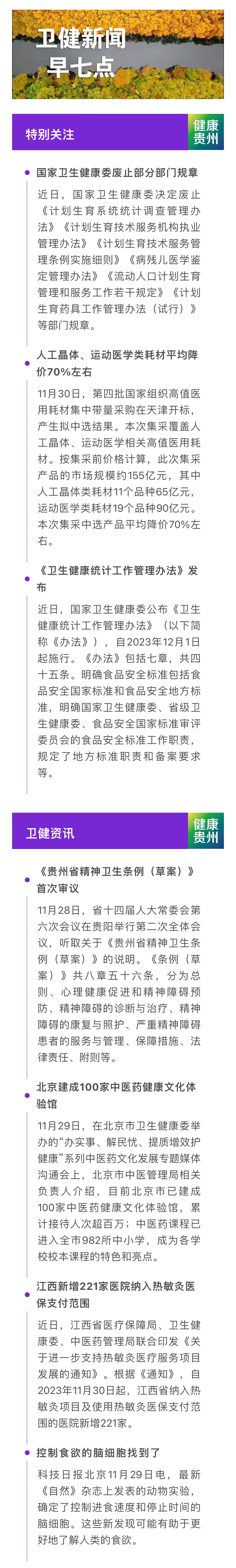动静健康 | 卫健新闻早7点〔2023.12.1〕