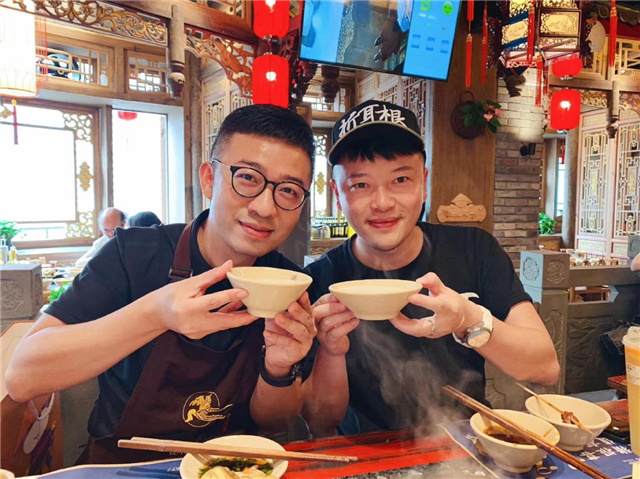 亚东和刘伟在成都参加全国优秀美食主持人评选