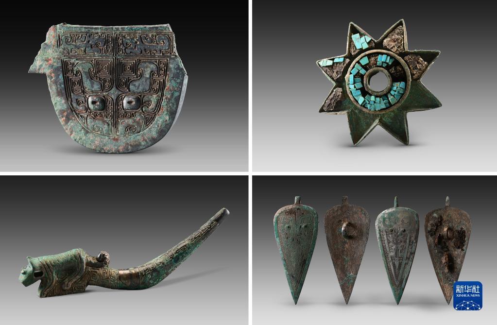 陕西清涧寨沟遗址出土的部分青铜器(拼版照片)。新华社发(国家文物局供图)