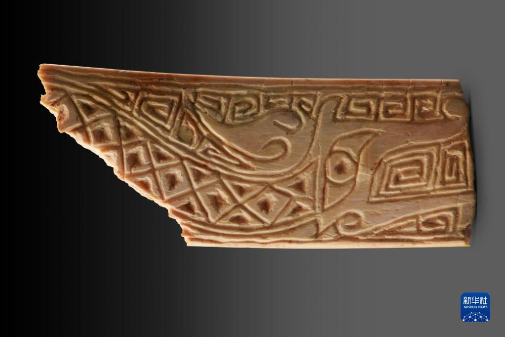 这是陕西清涧寨沟遗址发现的雕花骨片。新华社发(陕西省考古研究院 供图)