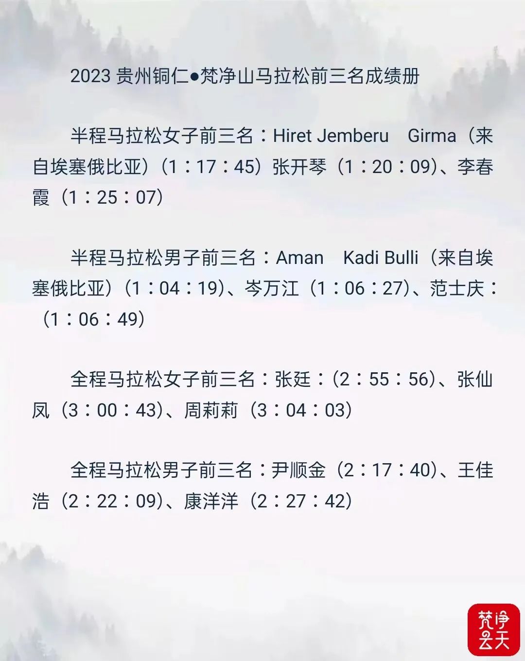 屡破纪录!2023贵州铜仁·梵净山马拉松成绩出炉