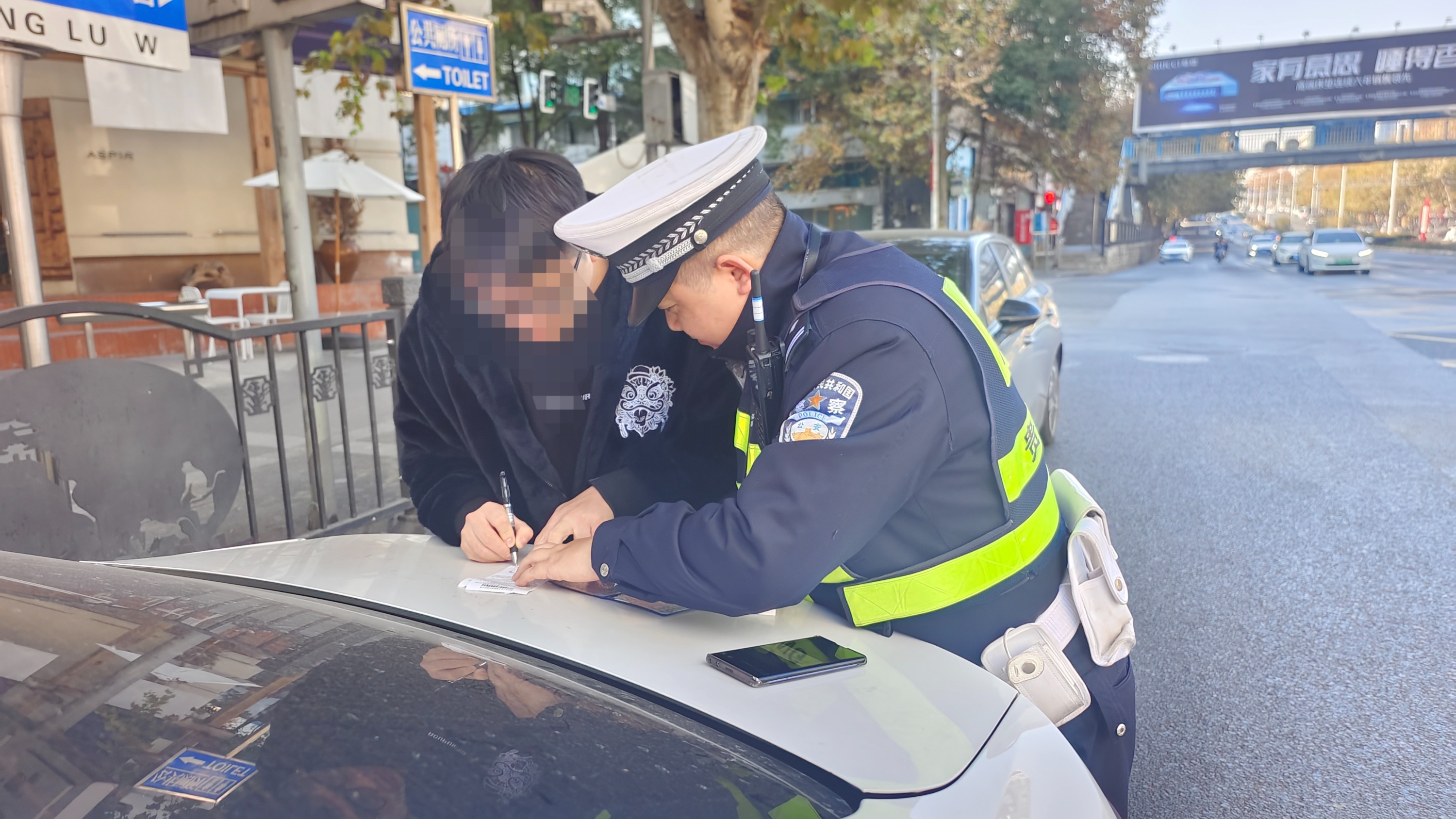 11月26日11时15分,南明交警指挥中心发现一辆车牌号为贵AD***67的“违法王”嫌疑车辆正在辖区内行驶。11时20分,南明交警四中队民警在解放路军区路口成功将该嫌疑车辆拦截。经现场确认,该车未处理交通违法记录达108条,累计记分36分,累计未处理的罚款金额为14300元,且车辆的检验有效期截至2024年11月,意味着该车已脱审约一年。经现场询问驾驶人陈某,其告诉民警“这辆车是公司的车,我也知晓该车的违法多以及未进行检验的情况,今天开出来是因为临时有事。”