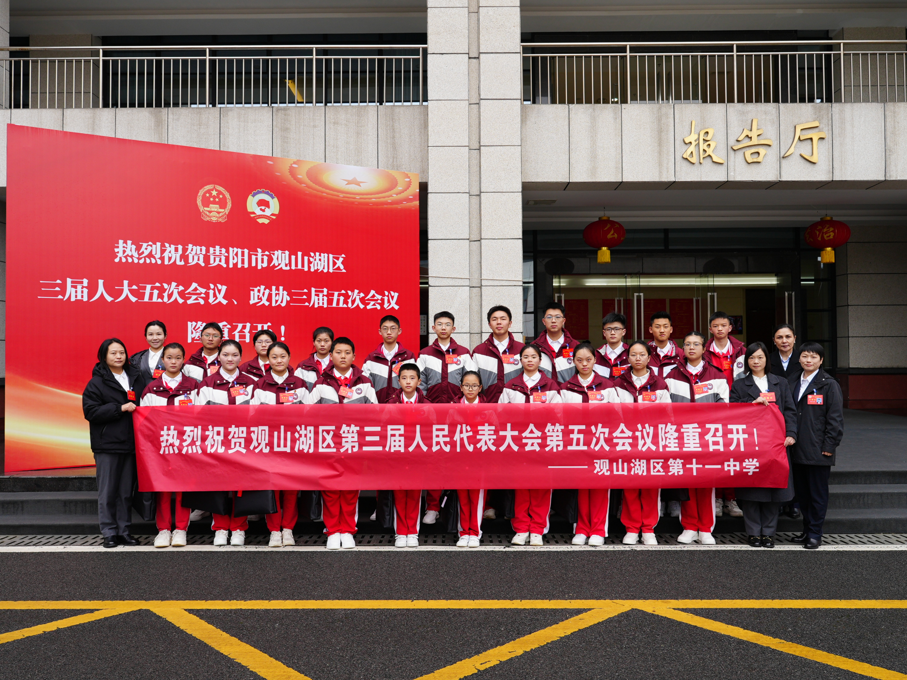 2025年2月3日至4日,观山湖区政协三届五次会议与观山湖区第三届人民代表大会第五次会议相继召开。会场内,一群身着整齐校服的青少年旁听者格外引人注目,他们是来自观山湖第十一中学的学生代表。