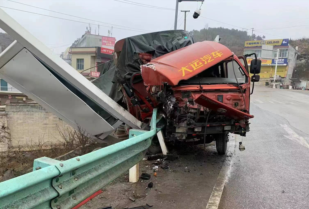 贵州交通广播记者从贵州省公安厅交通管理局获悉。2023年2月20日8时许,毕节市威宁县高速东站闸道出口红绿灯处一辆大货车以较快的速度出现在监控画面中,随后撞上交通信号灯发生侧翻。