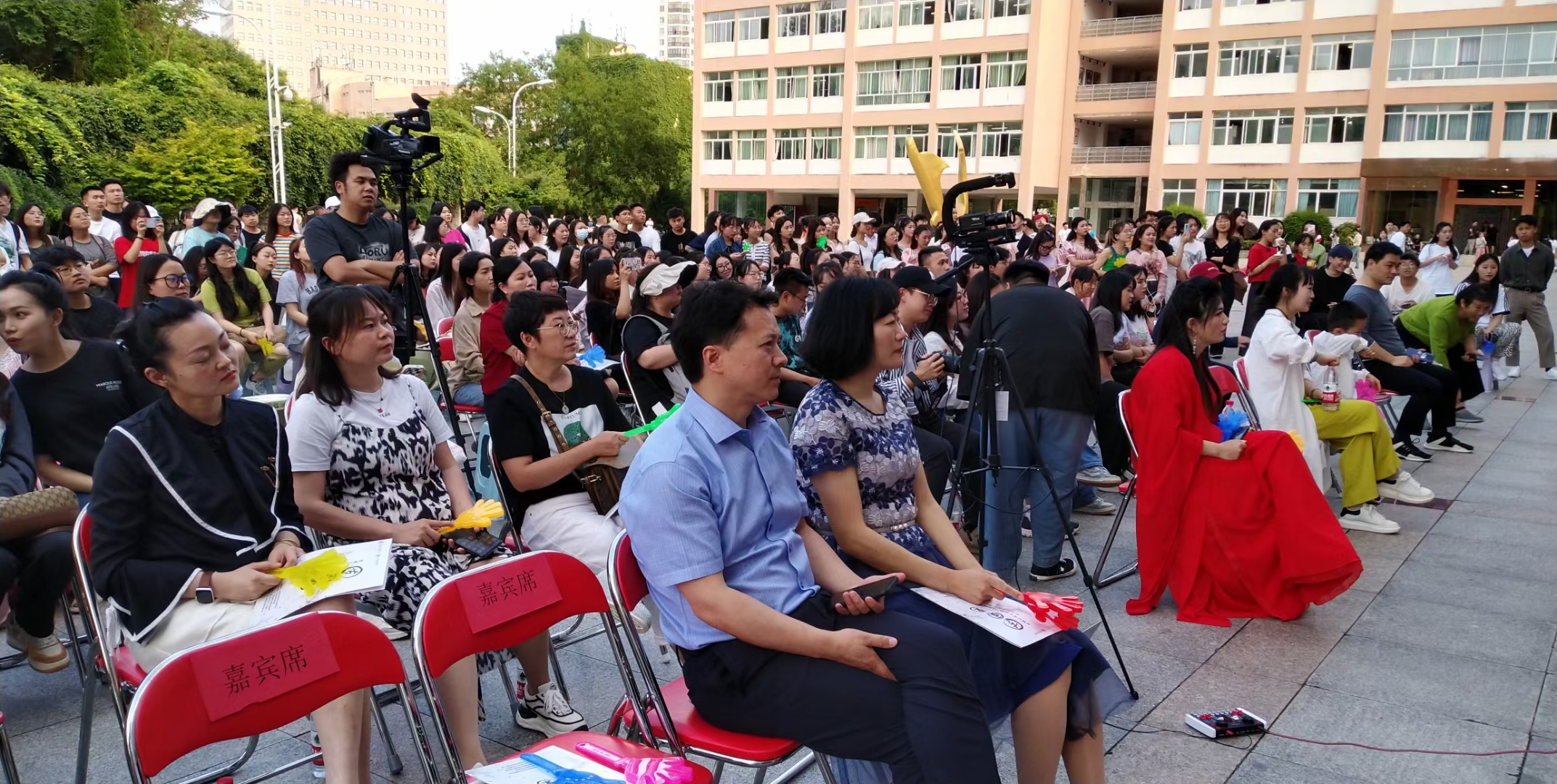 6月15日下午,由贵州师范学院音乐舞蹈学院主办,学院团委、器乐教研室承办,陈玉莲古筝副教授领衔的筝弦琴音育人才——清音筝乐团主题音乐会在音乐舞蹈学院广场隆重举行。音乐舞蹈学院党委书记付巧、院长马关辉、副院长王晓、音乐系主任刘昊佳、及部分教师和学生参加观看了音乐会。