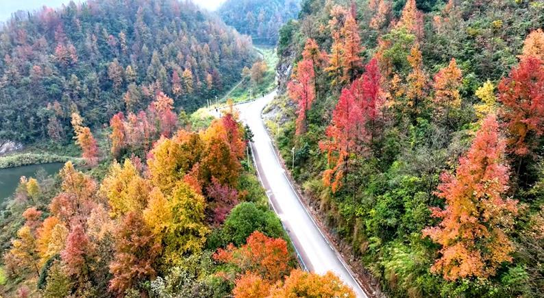 地处格所河大峡谷里的保基乡陆家寨,海拔较低,四季如春,寨中遍布枫香树,秋冬时节,枫叶渐次由绿转黄再变红,峡谷中层林尽染,绿色为底,黄红添彩,是格所河峡谷一年中最多彩绚烂的季节。
