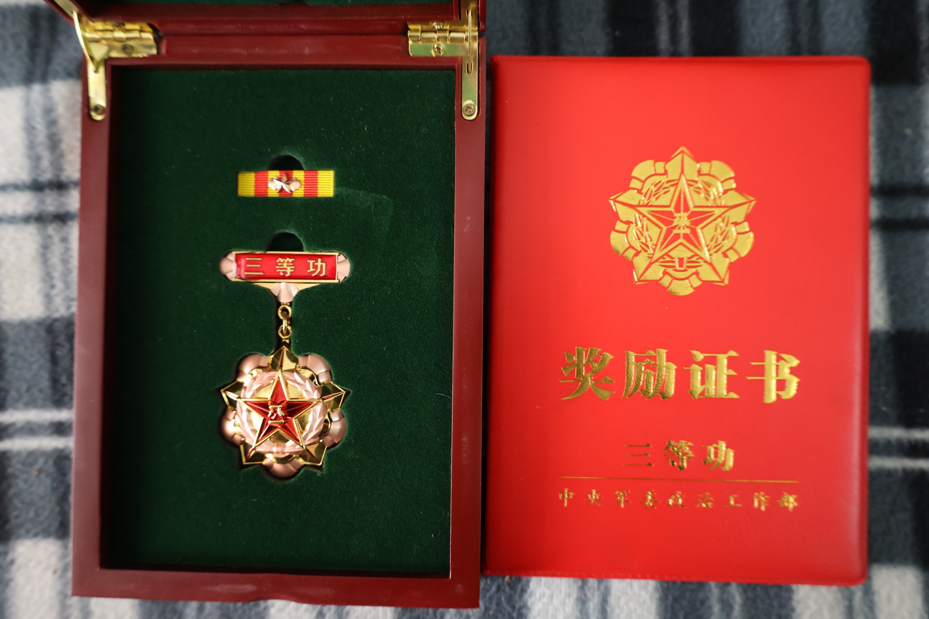 慰问组为家属戴上荣誉绶带,并宣读了立功喜报、送上“三等功臣之家”牌匾和奖励金。