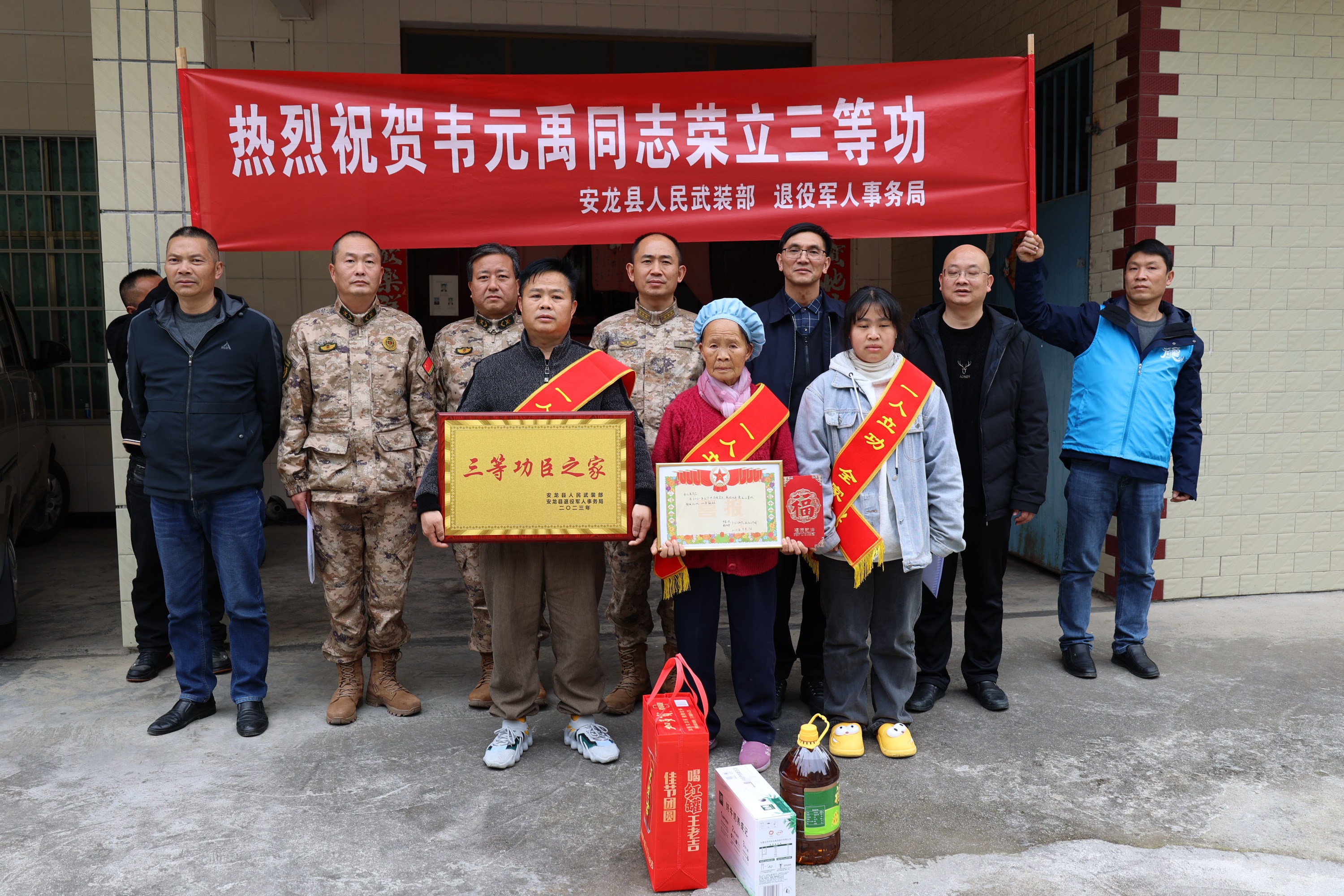 1月3日,安龙县人武部、退役军人事务局联合为现役军人韦元禹家庭送去立功喜报和暖心慰问,让军人军属共享喜悦荣光。