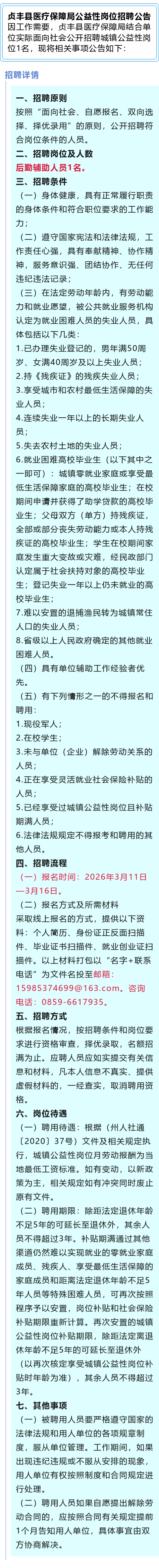 医疗保障局招聘后勤辅助人员!残疾人员可报!