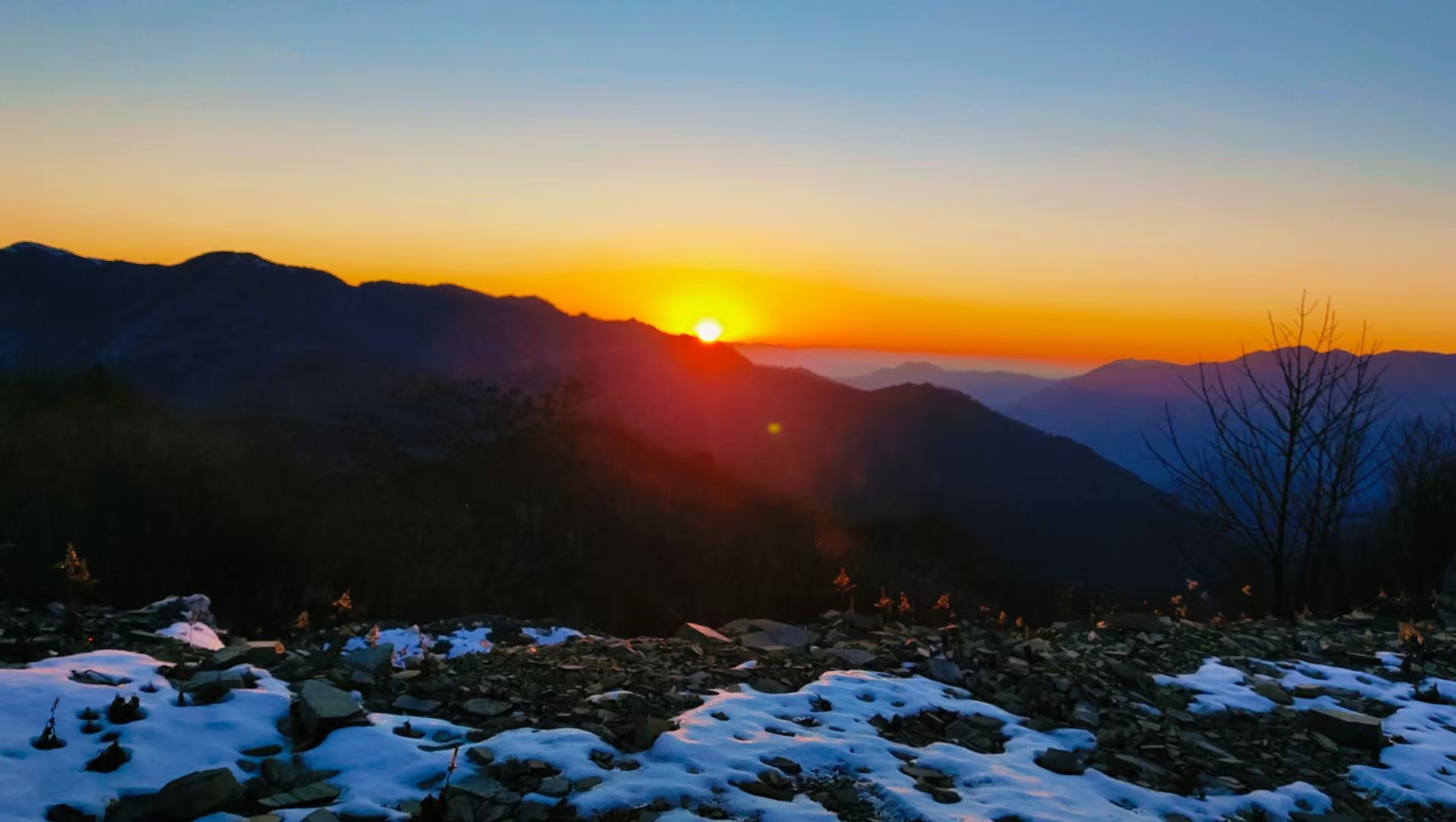 冬日的清晨,阳光划破静谧、洒向大地。图为重庆城口黄安坝景区。(王超 摄)