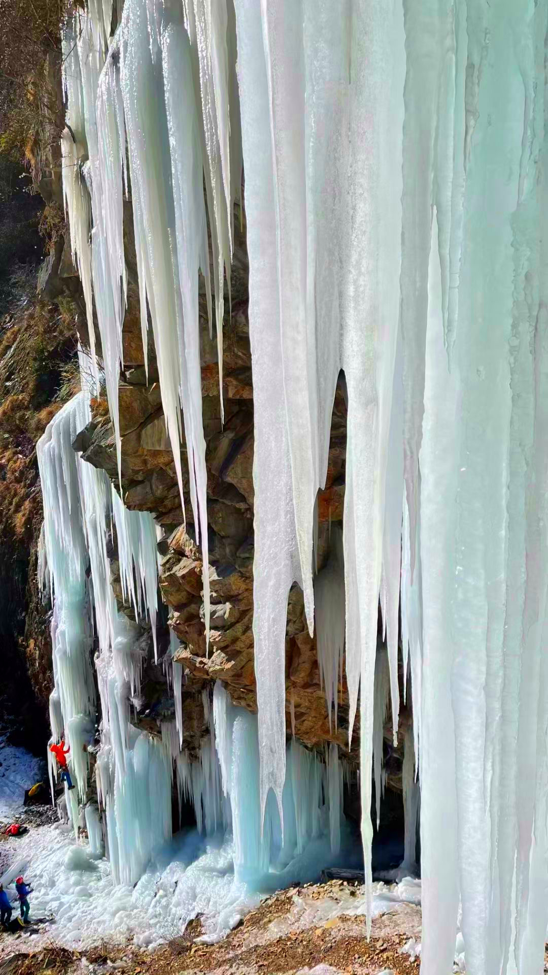山间缓缓流淌的溪流,在寒冬里结冰,形成冰挂,这是专为冬季定制的美景。图为重庆城口东安镇。(王超 摄)